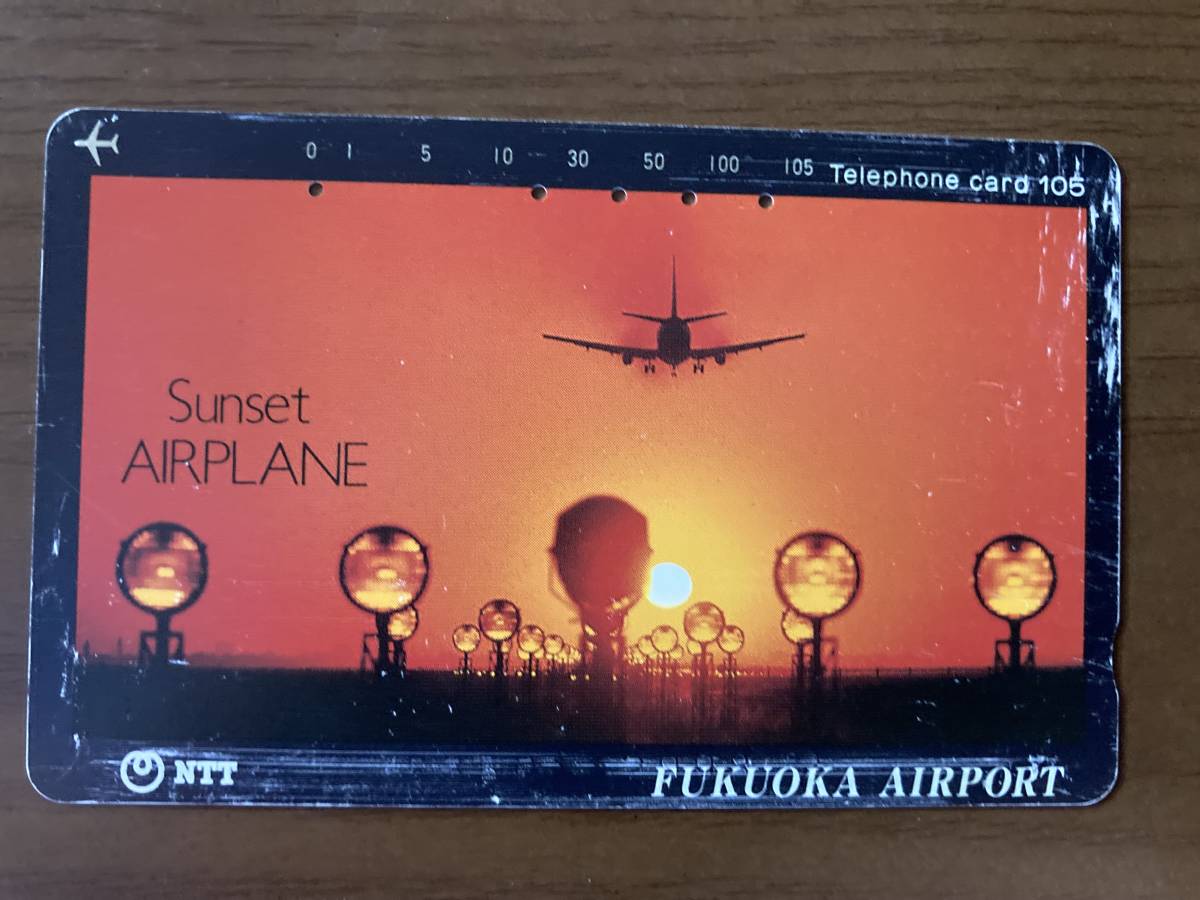 - ★福岡空港 FUKUOKA AIRPORT Sunset AIRPLANE サンセット 航空機 使用済 テレホンカード テレカ 105度数 福岡県 NTT ミニレター