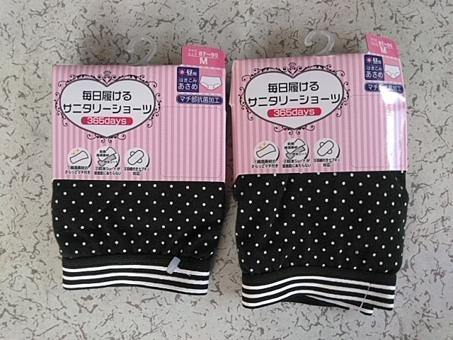 - サニタリーショーツ 365days 黒地ドット柄 M 2枚 (同) 昼用 はきこみふつう 綿混