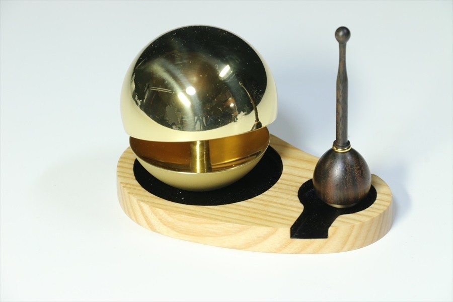- 送無 仏具■ たま型 りん 3点セット(本体+専用棒+専用台)■金