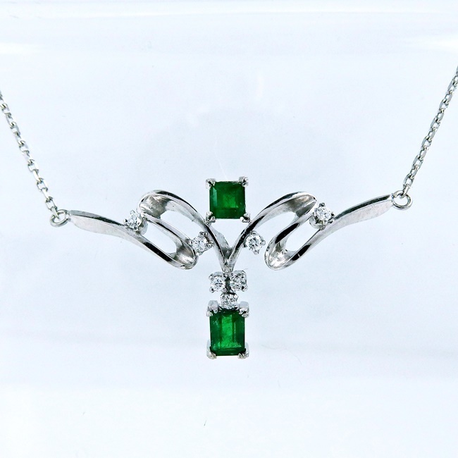 - Pt850 ★ネックレス エメラルド 5月誕生石 ◇ダイヤモンド0.65ct 〇43cm 【中古】 /10023309