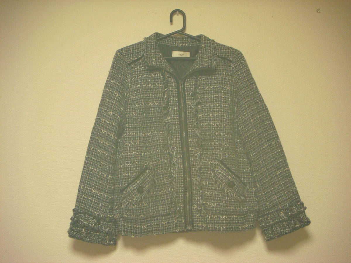 - アクシーズファム ツイード お袖フリル ジッパー ブルゾン ジャケット 黒グレー