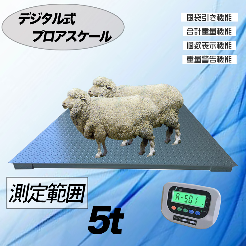 > 即納‐5tデジタルフロアスケール】1500㎜×1500㎜ 台秤 低床式計量器 風袋引き・合計重量・個数表示・重量警告機能