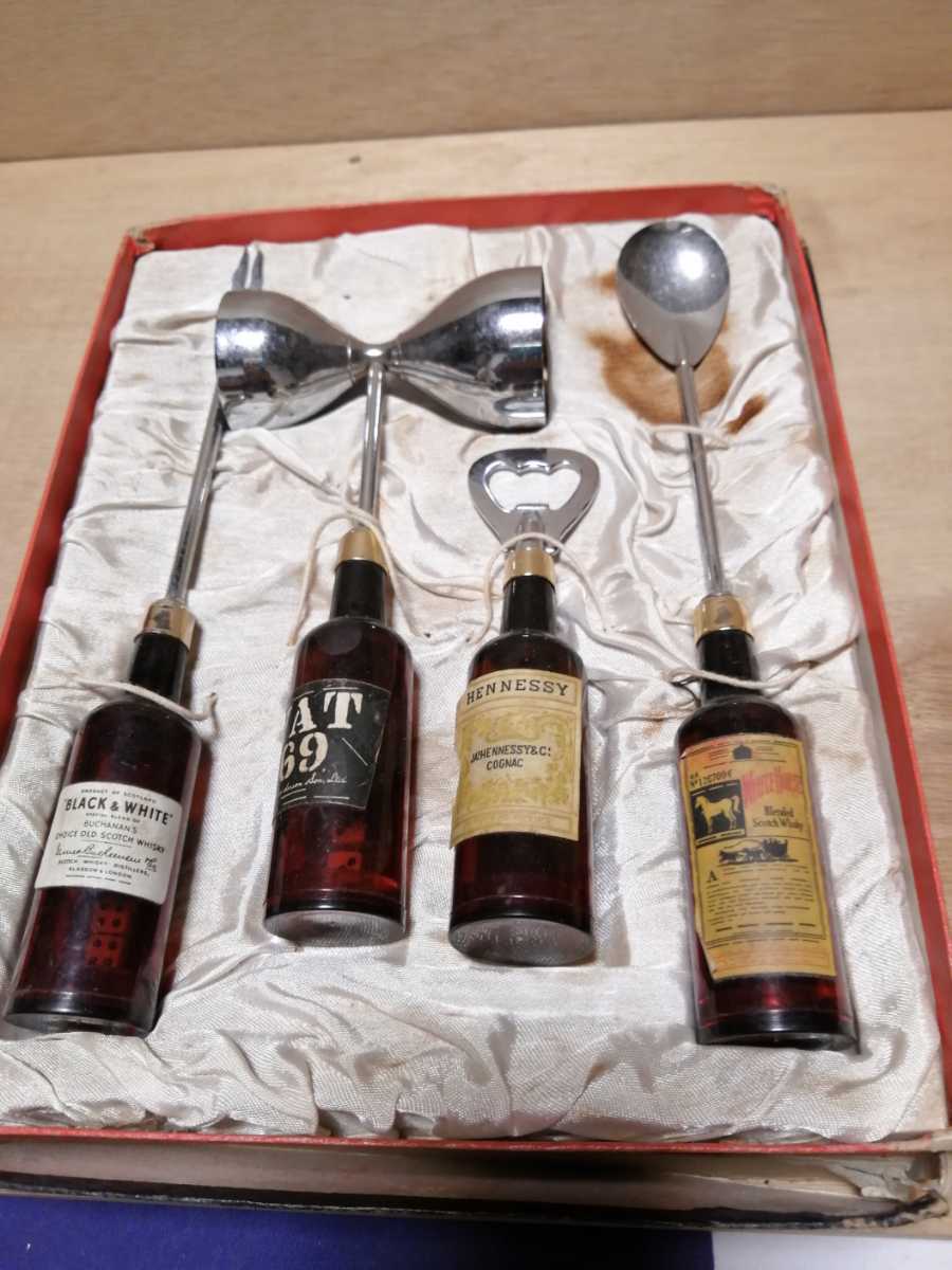 - バーセット 1970年代 イギリス BLACK &WHITE VAT69 HENNESSY WHITE HORSE ダイス入 ホームバー カクテル ミニチュアボトル 16KT06y1