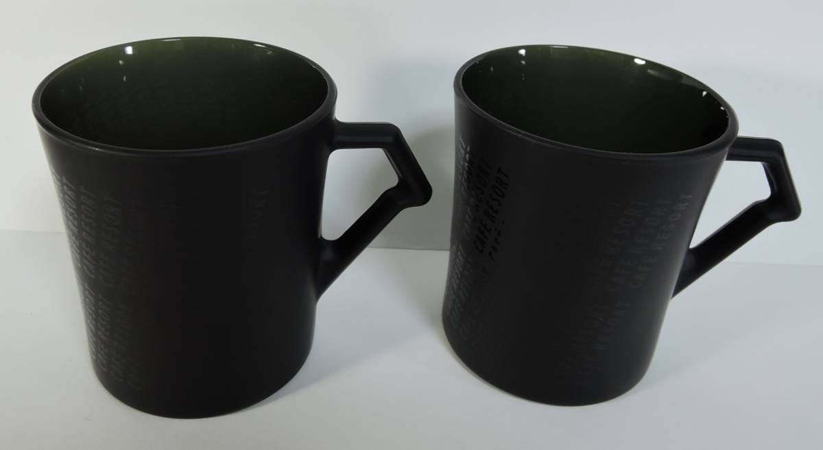 > ☆04J■CAFE RESORT カフェリゾート 濃い緑色 摺りガラス マグカップ 2個■未使用