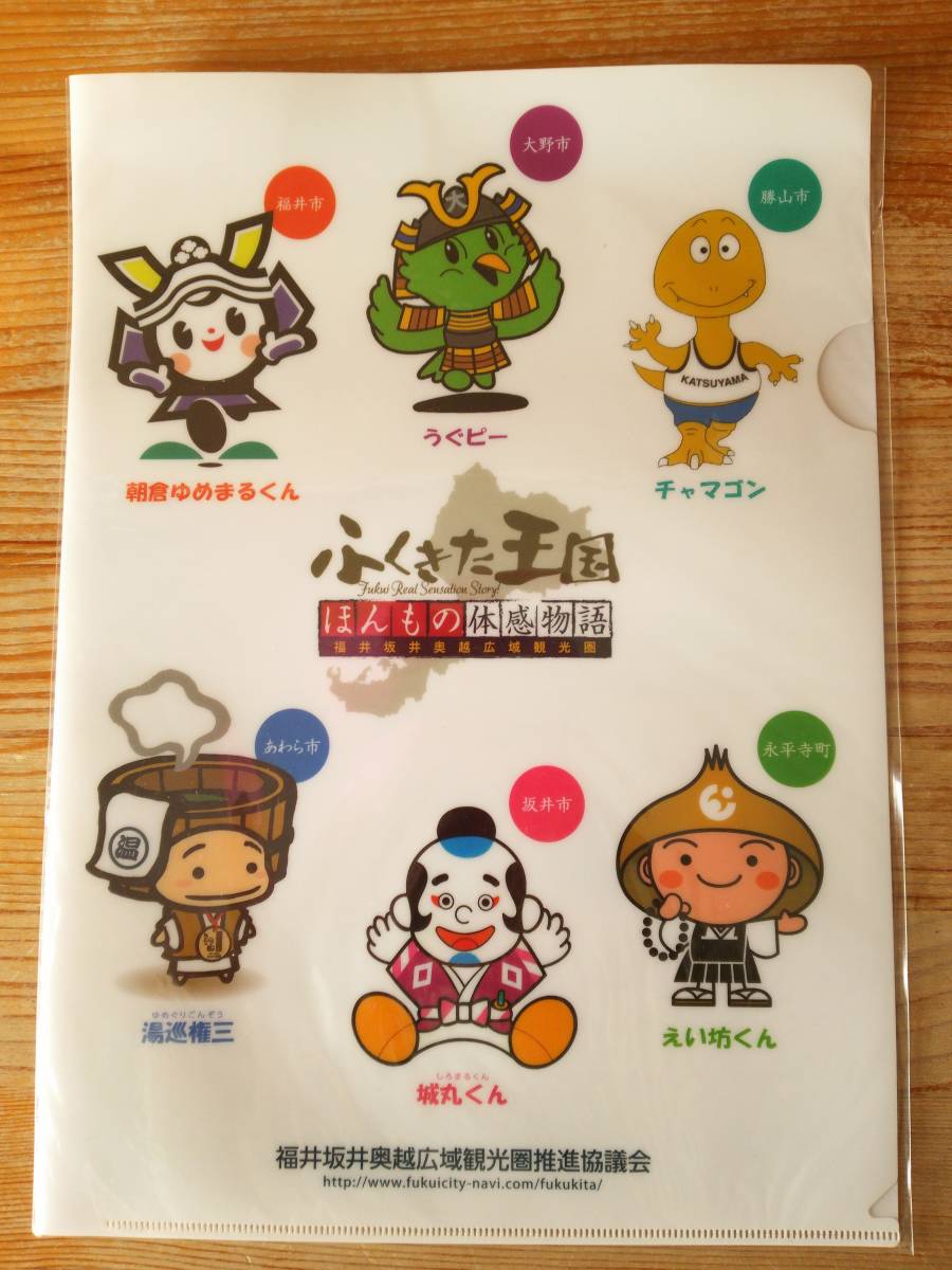- A4 クリアファイル 白 ふくきた王国 朝倉ゆめまるくん うぐピー チャマゴン えい坊くん 城丸くん 湯巡権三 福井坂井奥越広域観光園
