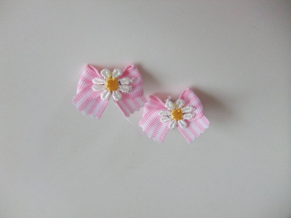 - *犬*犬用アクセサリー*リボン*可愛い*女の子*美品*お花*ピンク*ストライプ*爽やか*わんちゃん*
