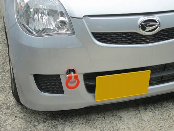 - ミラ(L275,285系)用 ボルトオンで装着出来るフロント牽引フック(可倒式フロント用)新品箱入り、税込み