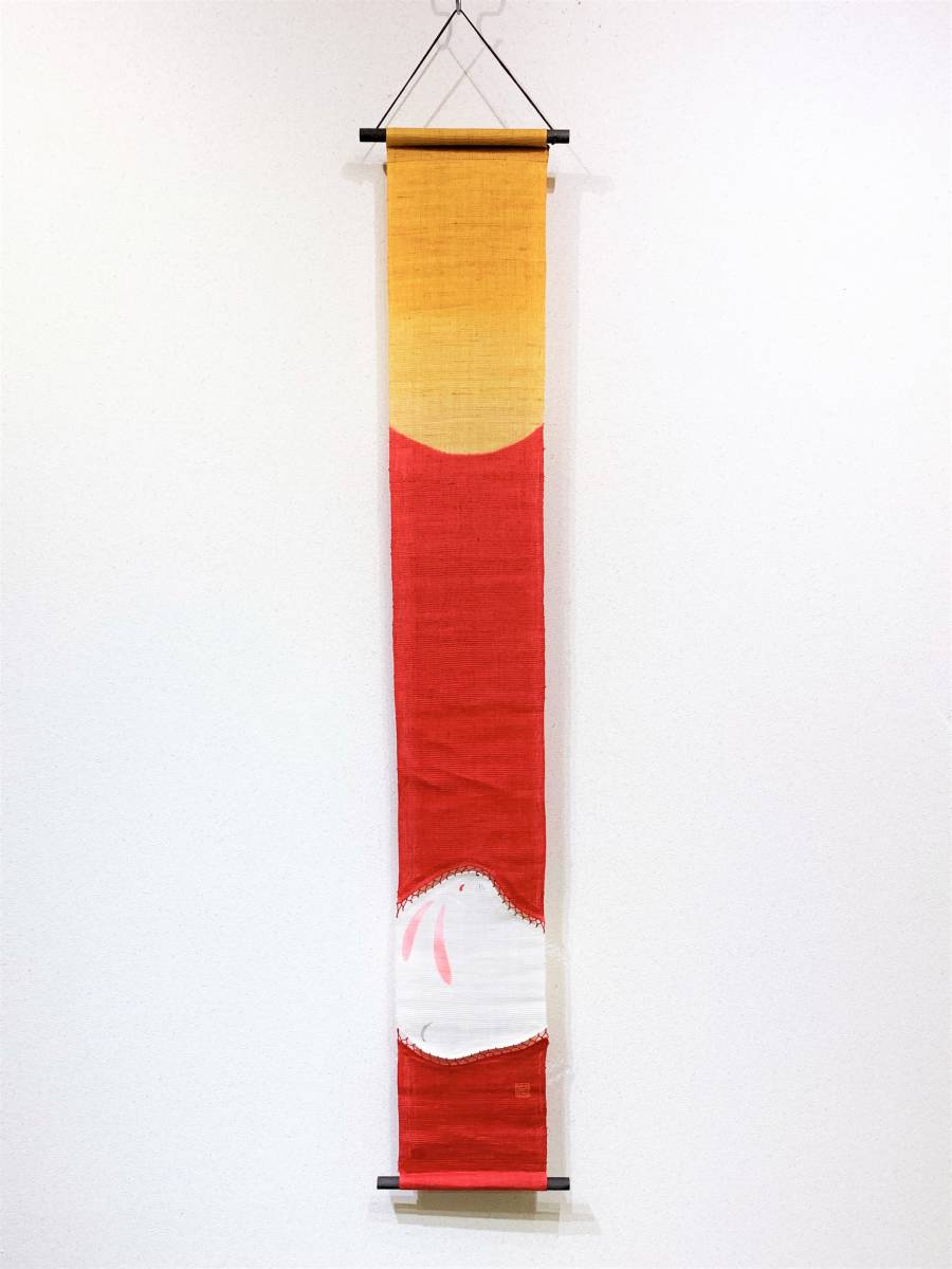 - 花とら タペストリー 月とうさぎ 赤 未使用品 超美品 麻 京都洛柿庵 壁掛け プレゼントにも