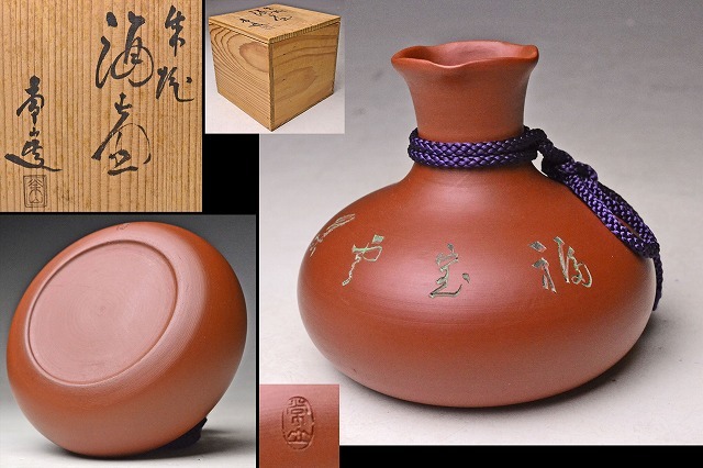 - 山田常山 初代か ★ 常滑 朱泥 酒壺 ★ 共箱 ★ 土味良く美しい造形の逸品 ★ 酒器 ★