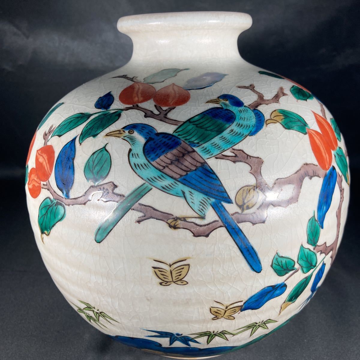 - 九谷焼 五彩手 花鳥蝶紋 花入 花生[10]888