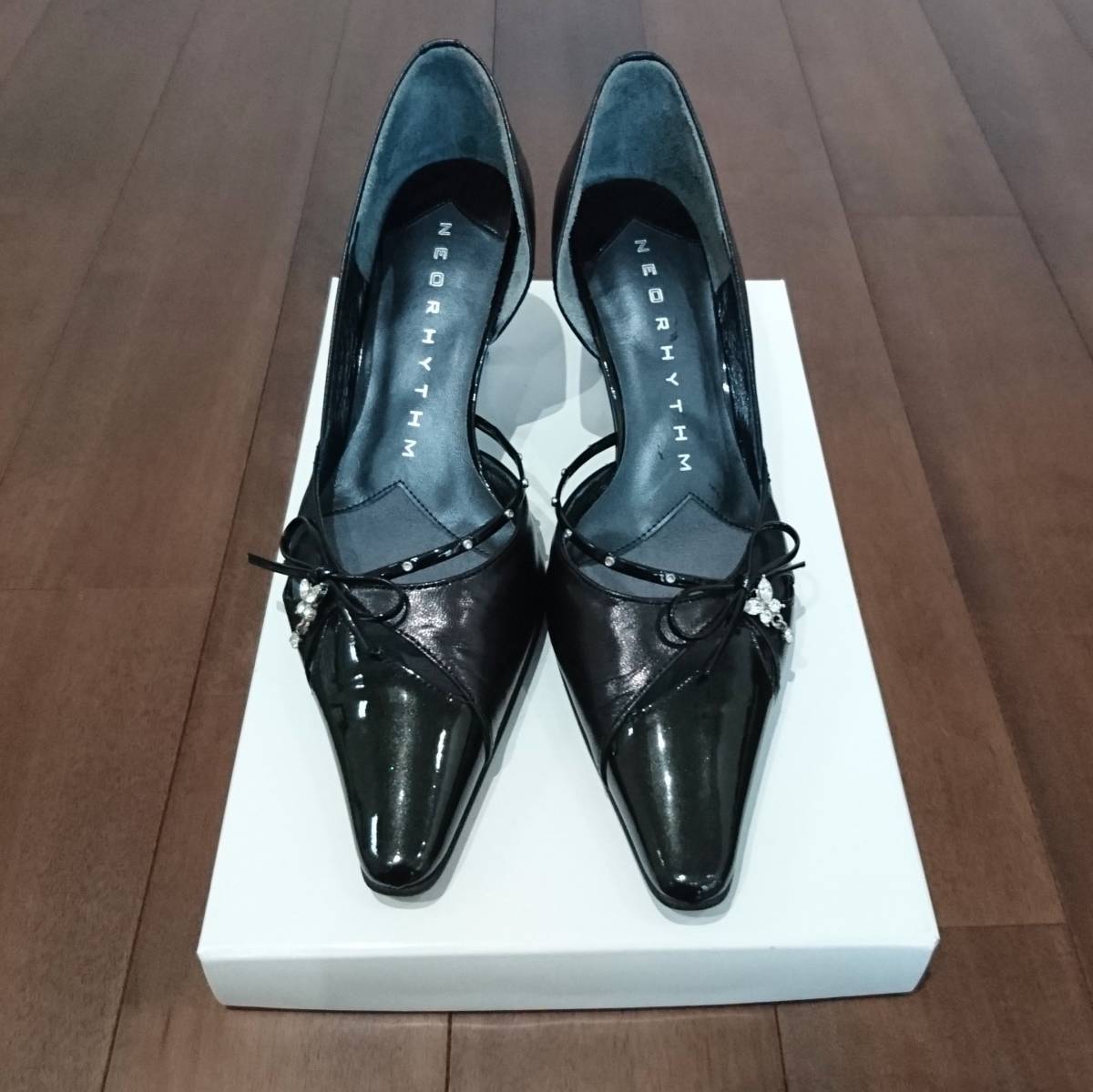 - NEORHYTNM 黒 本革×エナメル パンプス