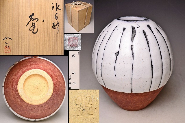 > 林小六( 林慶六 ) ★ 氷白酔 壷 ★ 共箱 共布 栞 ★師: 楠部彌弌 ★ 人間国宝 清水卯一 氏の作風を思わせる景色の良い逸品 ★ 京焼 ★
