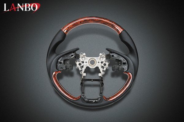 > LANBO オリジナルステアリング【ガングリップ】 ホンダ N-VAN JJ1/2 茶木目 [LSH20B]