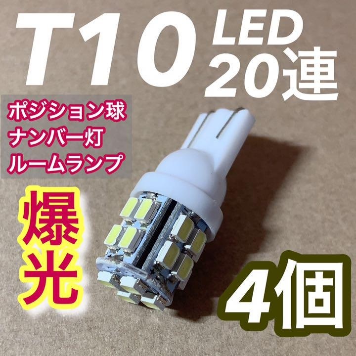 > ◇4個セット◇T10 LED 超高輝度SMD 20連 ルームランプ ナンバー灯 ウェッジ球 室内灯 車内灯 カスタム ライト パーツ ホワイト