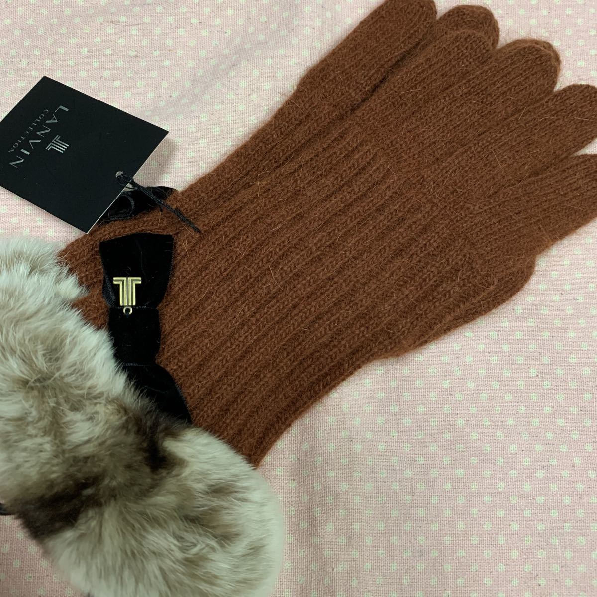 - ランバン 手袋 ニット リボン