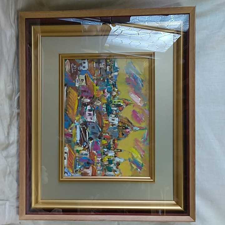 - No86 4号油絵 田中 均 真筆 古都 国際美術協会会員 ガラス入り 額に経年変化補修等あり