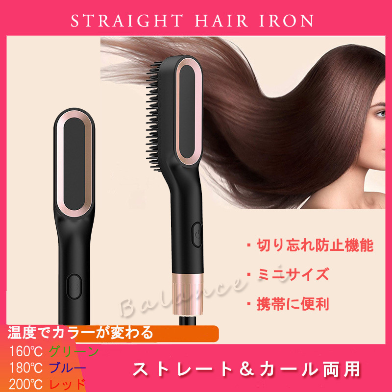 - ストレートアイロンブラシ ヘアアイロン ストレート 内巻き 外巻き ミニサイズ やけど防止 切り忘れ防止機能StrCL618
