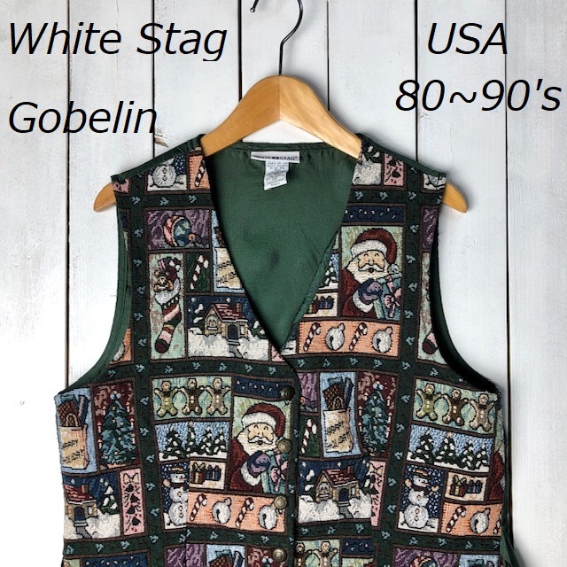 > USA古着 80s~90s WHITE STAG ゴブラン織り ベスト サンタクロース S~M オールド ヴィンテージ ア クリスマス ホワイトスタッグ 緑 ●44