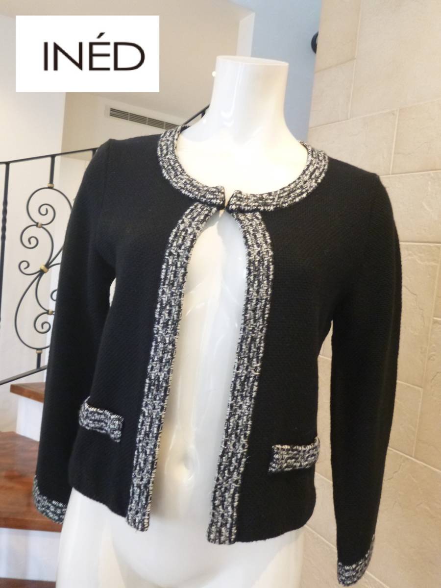 - 2.5万 超美品 INED イネド ★ 黒×白 厚手カーディガン 9 M相当