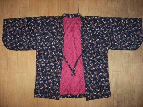 > 美品★昭和レトロ★日本製★80.90年代★日本文化★古風★厚手 花柄 はんてん 和装コート 着物コート 浴衣ジャケット 和服★浴衣 法被