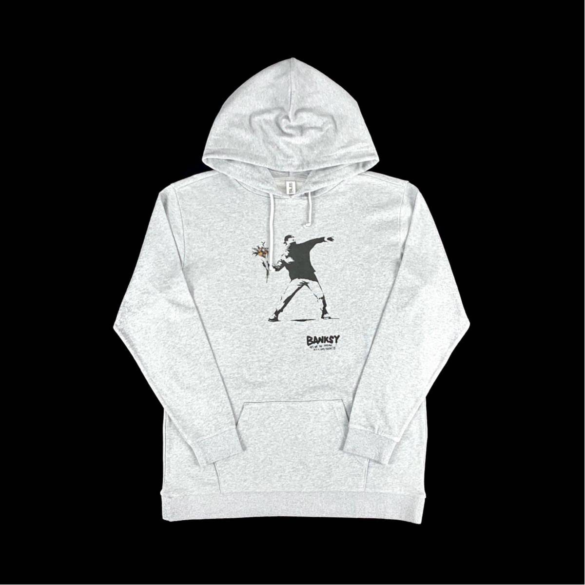 - 新品 バンクシー BANKSY 花束 Flower Thrower パレスチナ 正体不明 社会風刺 グラフィティ パーカー XL XXLサイズ 大きい ワイド フィット