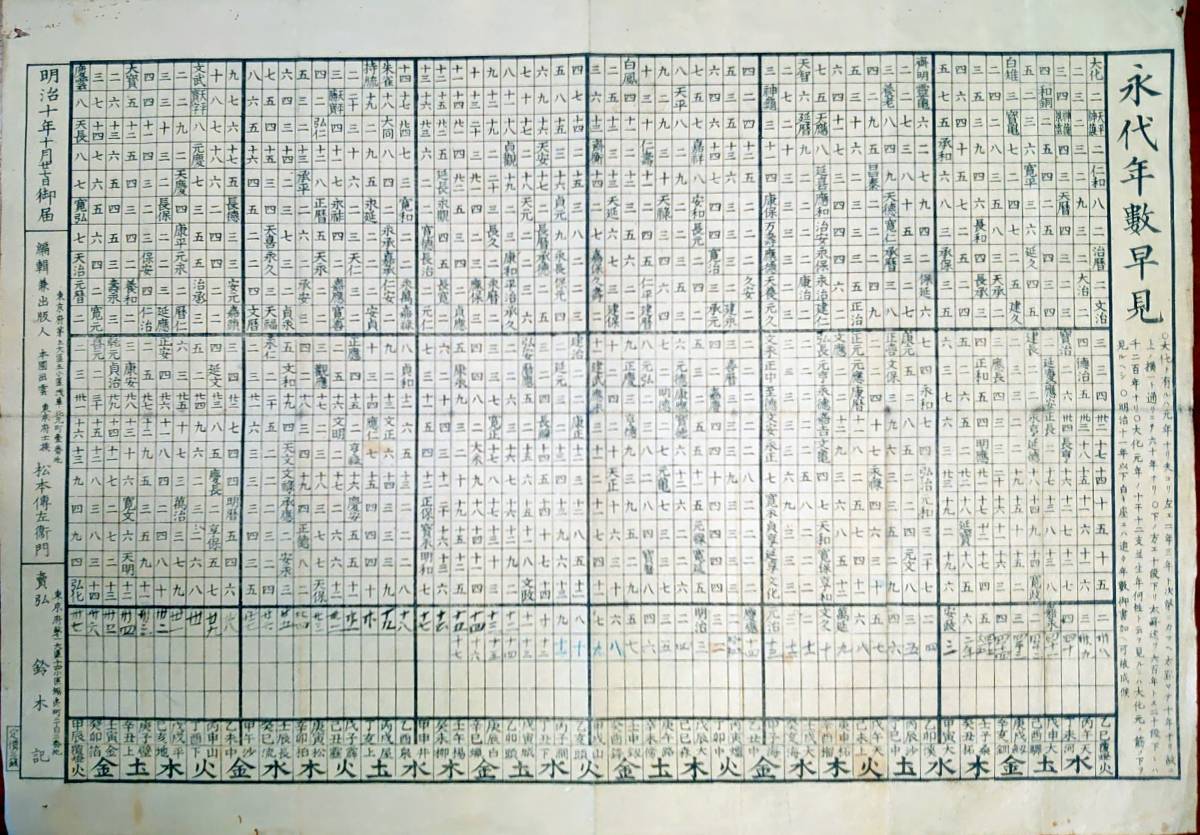 - f22010703〇刷物 永代年数早見 明治10年 東京府 大化~明治〇和本古書古文書