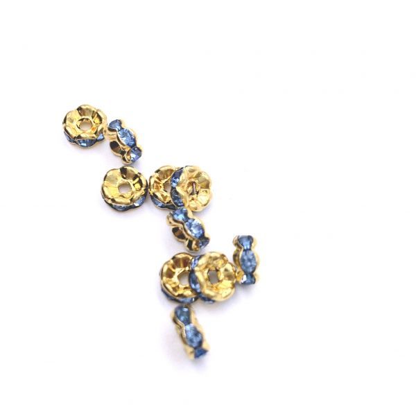 - ハンドメイド クラフト パーツ スペーサー ラインストーン 6mm ゴールド 30個 ライトサファイア