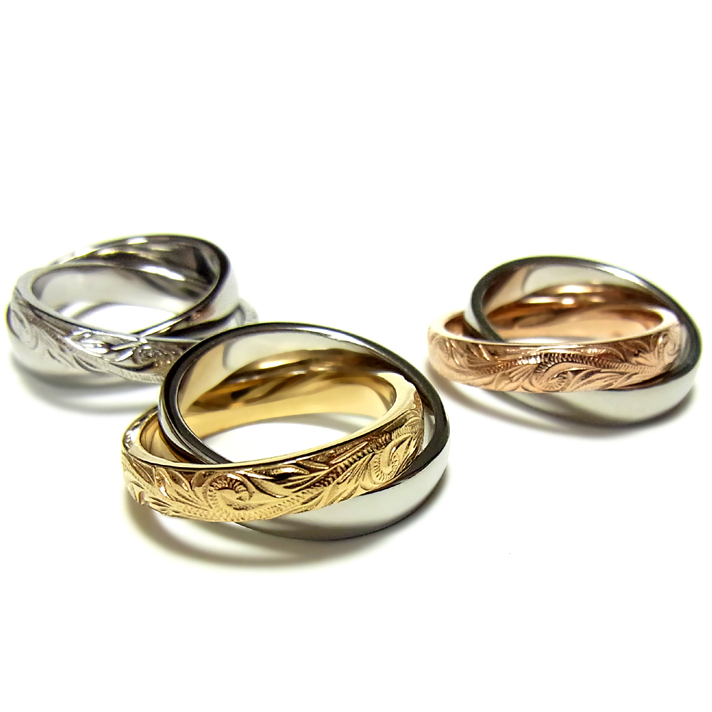 > ★ハワイアンジュエリー★金属アレルギー&温泉&海水浴OK★ステンレスリング★波&ダブル2連リング&ゴールド&ピンクゴールド&シルバー★