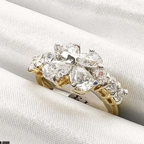 > 送料無料!!大粒 四つ葉 ストーン◇13号◇キュービック・ジルコニア(CZダイヤモンド)◇デザインリング◇指輪◇アクセサリー◇R-0086