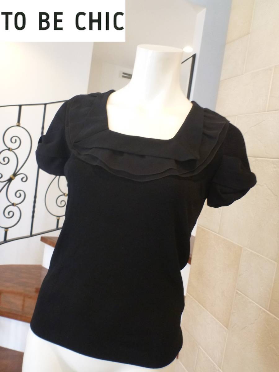 - 2.5万 美品 TO BE CHIC トゥービーシック ★黒 フリル 肩リボン 半袖 セーター Ⅱ M相当