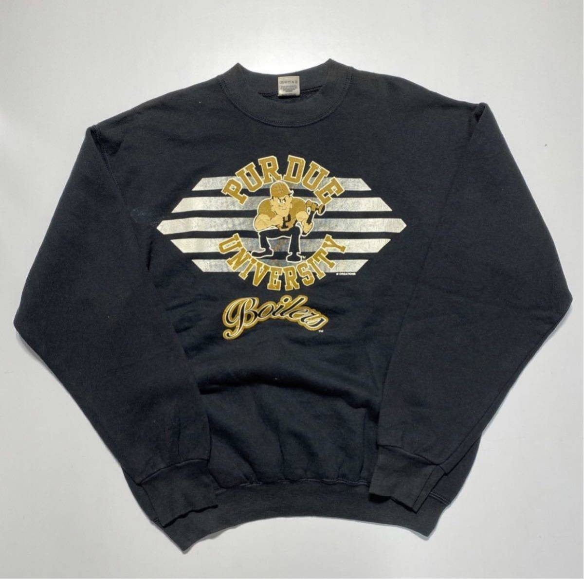 - 【L】90s PURDUE UNIVERSITY Print Sweat 90年代 パデュー大学 プリント スウェット トレーナー フルーツオブザルーム USA製 Y1040