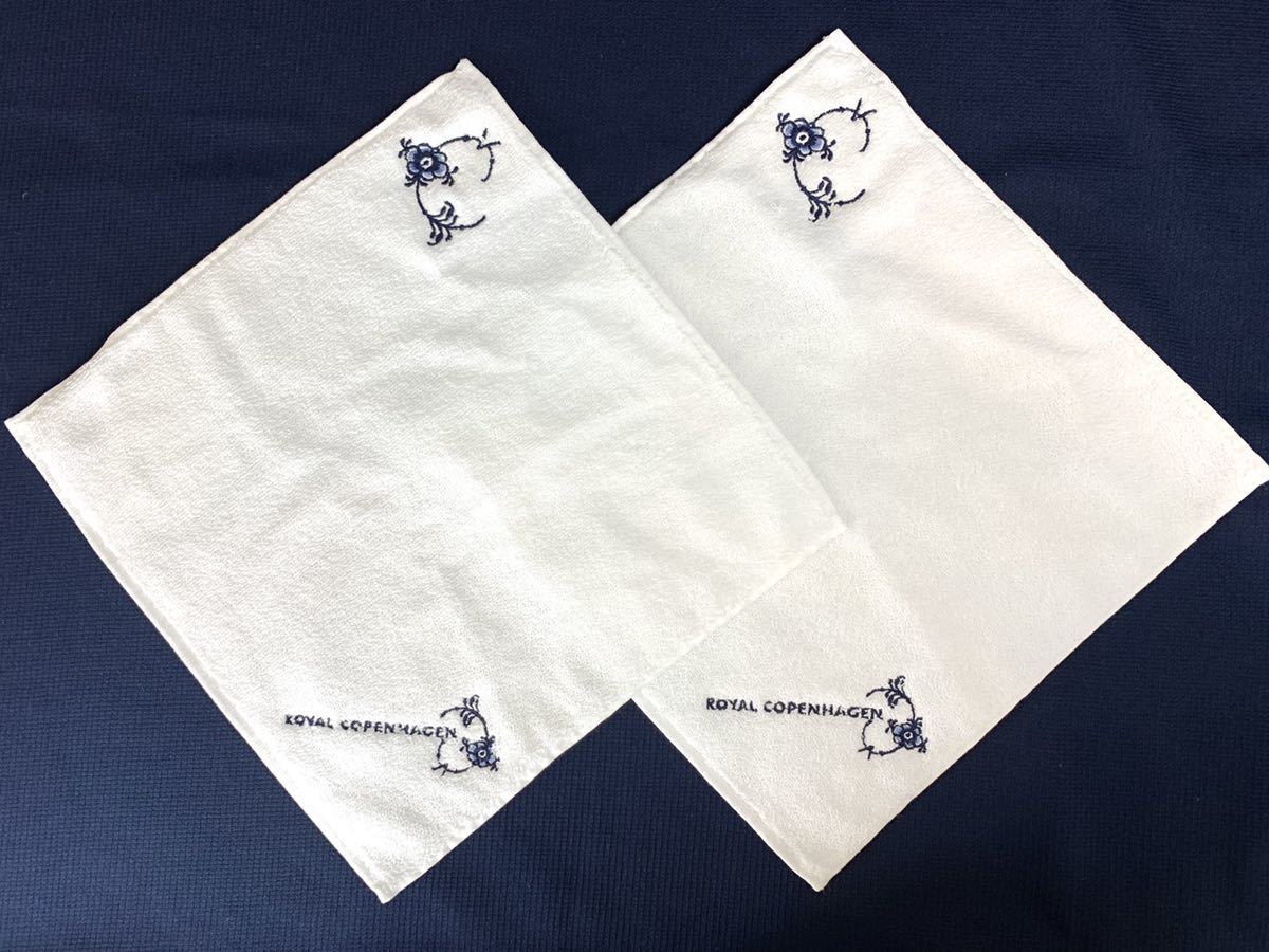 > 60▼ROYALCOPENHAGENロイヤルコペンハーゲン ハンドタオル ウォッシュタオル 綿100% 2枚セット 未使用品 管理2201 E-16