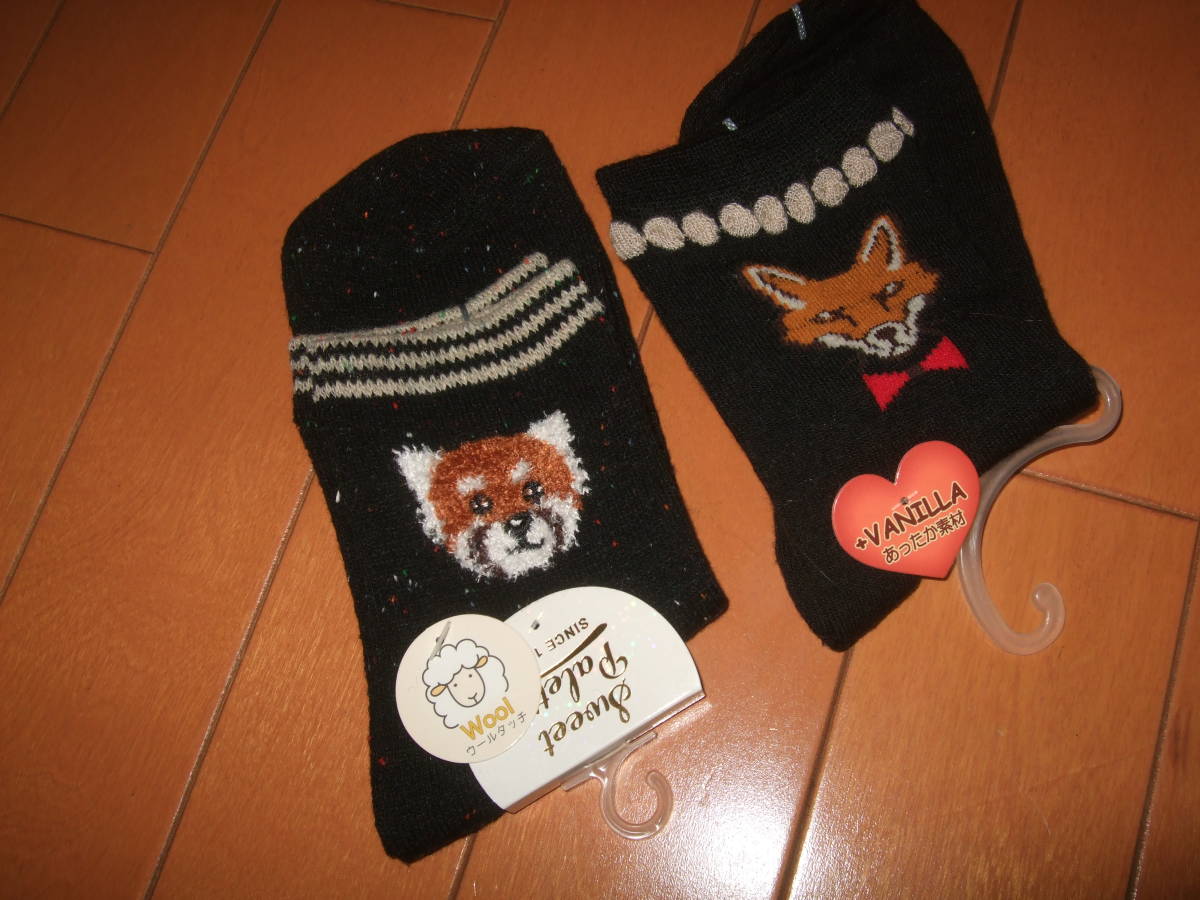 - 新品未使用送料込即決☆あたたかソックス2足セット☆23~25㎝ 犬&フォックス