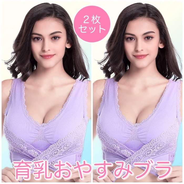 - 送料無料★即納!2枚セット おやすみブラ ナイトブラ 育胸 スポーツブラ ノンワイヤー 美胸 バストアップ ★XL/パープル
