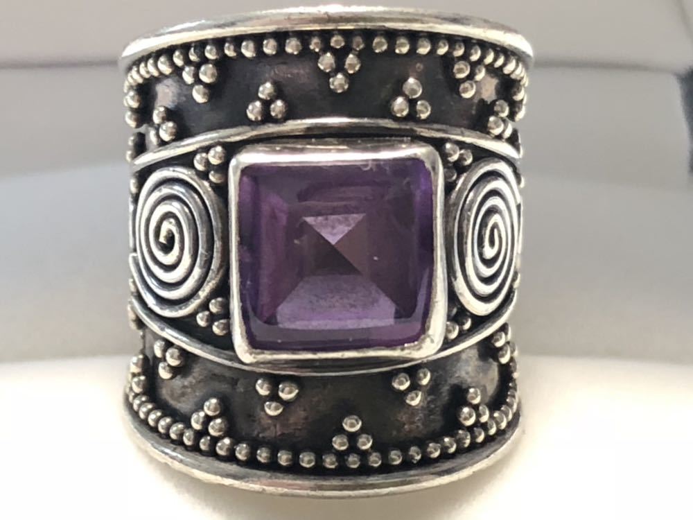 > ヴィンテージ SUARTI(スワルティ) アメジスト SILVER925 8.2g スクエアカボションカット デザイン リング【検/指輪/シルバー/銀】