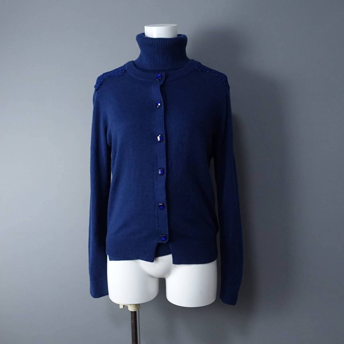 - TORRAZZO DONNA/トラッゾドンナ/タートルネック/ウール混/レースデザインアンサンブル/ネイビー/レディース/カーディガン/タートルネック