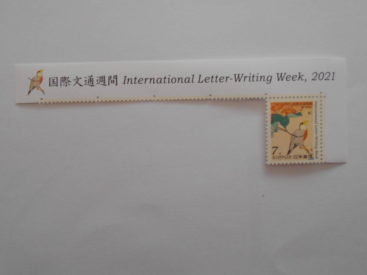 - 題字付き文通週間 2021 鵤 白粉花 未使用7円切手