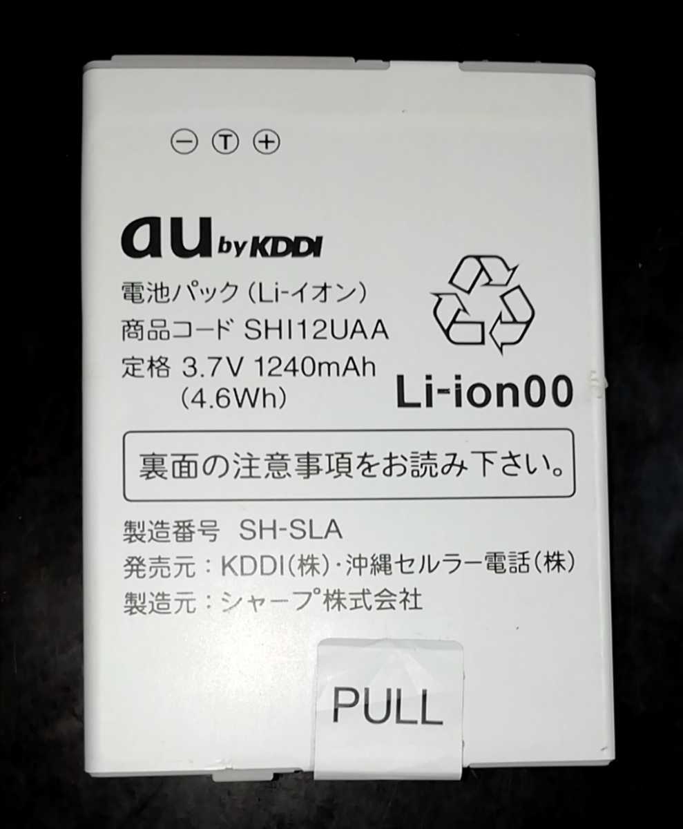 - 【中古・残り1個】au純正SHI12UAA電池パックバッテリー【充電確認済】対応機種(参考)IS12SH