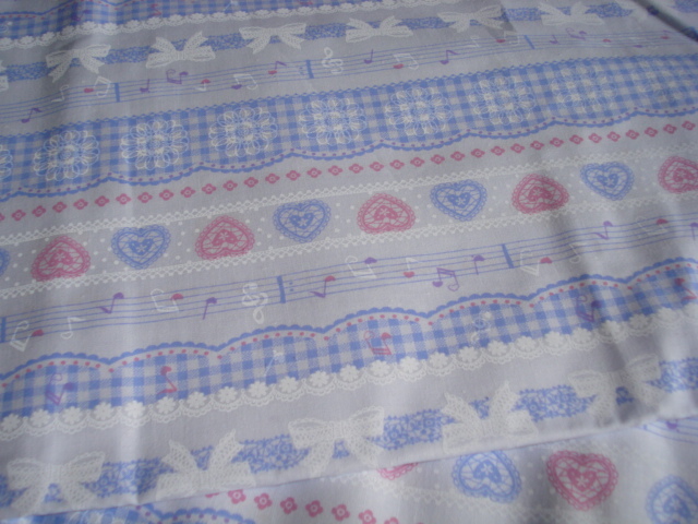 - 「レース・ボーダー」(水色)約50×50㎝/リボン・音符・ハート