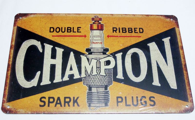- チャンピオンスパークプラグ/Champion 金属板広告プレート/ヴィンテージ看板のレプリカ
