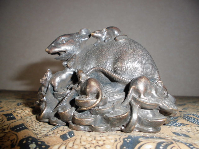 - ☆★骨董天国☆★開運!!銅器置物(3・財宝鼠)