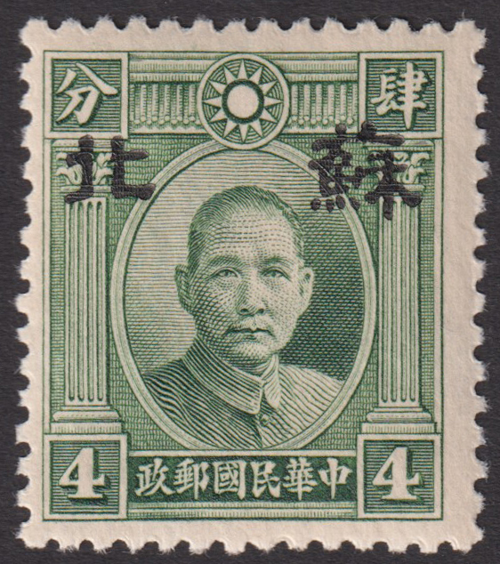 - 中国占領地切手 蘇北 省名加刷 小字 ロンドン版孫文票 幅狭 等長線 4分 未使用 NH JPS:5C4 0580