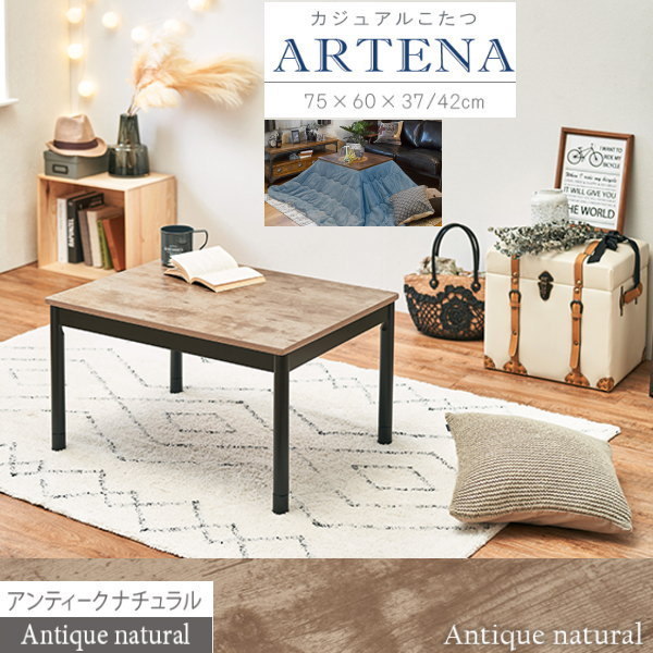 - 送料無料 カジュアルコタツ アルテナ7560 長方形 横幅75cm 奥行60cm 継脚5cm 石英管ヒーター ANA アンティーク ナチュラル
