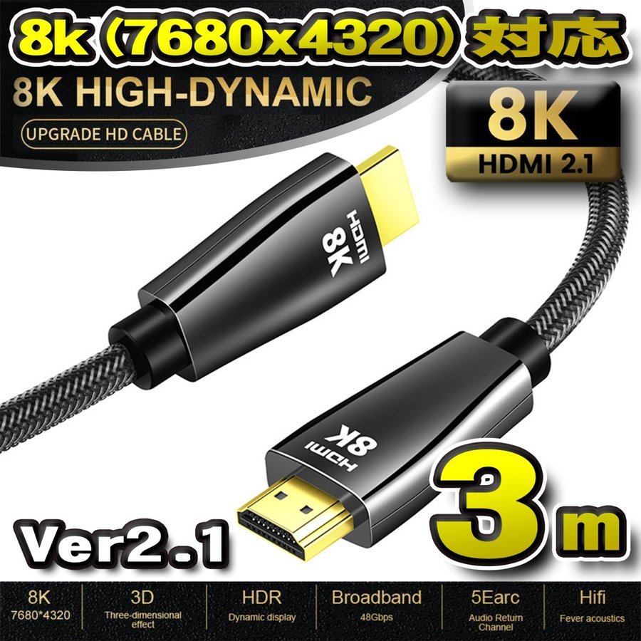 > 【最新8K】HDMI ケーブル 3m 8K HDMI2.1 ケーブル 48Gbps 対応 Ver2.1 フルハイビジョン 8K イーサネット対応 3メートル