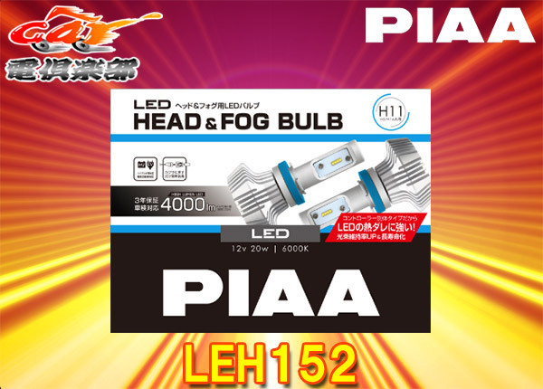 > 【取寄商品】PIAAピアLEH152ヘッド&フォグライト用LEDバルブH8/H9/H11/H16適合6000Kコストパフォーマンスモデル3年保証・車検対応