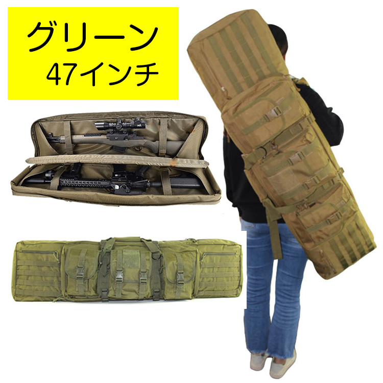 - (グリーン47インチ)ガンケース ガンリュック サバゲー 2丁収納 ガンケース ソフト 118cm エアガン ソフト リュック フィッシングバッグ