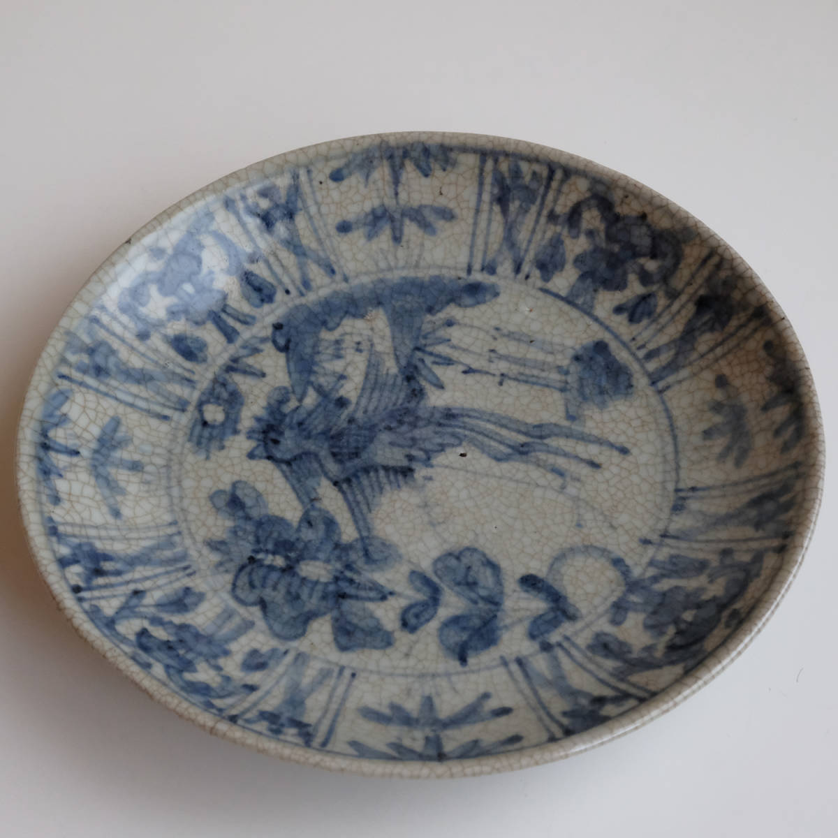 - 花鳥文皿 中国 古陶器 直径約22cm 古染付