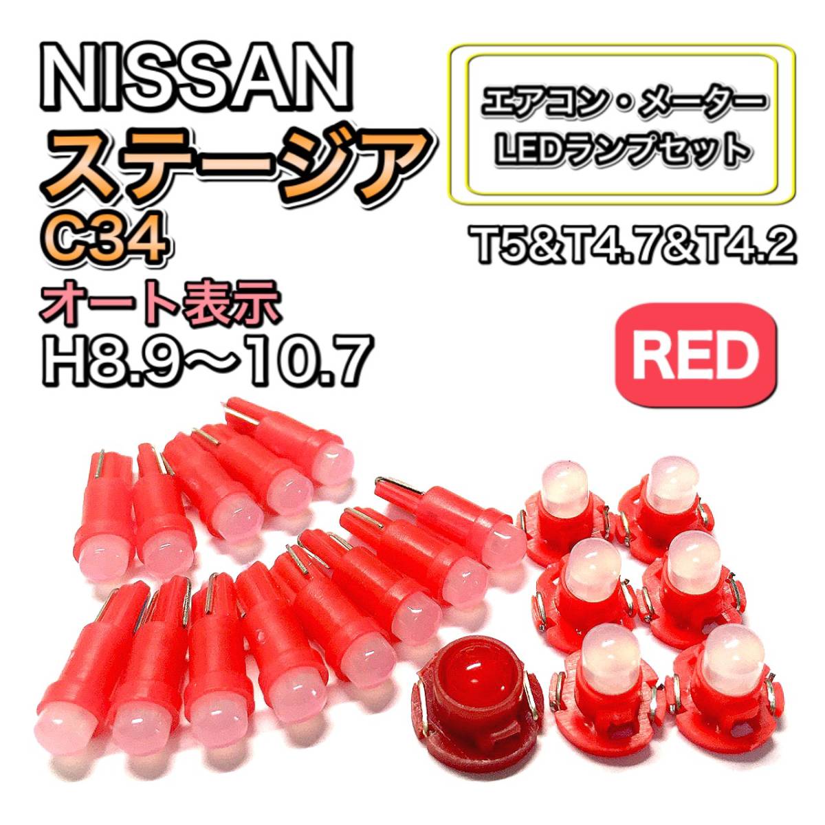 - ステージア C34 マイナー前 H8.9~H10.7 打ち換え LED エアコン・メーターランプ T4.7T5 T4.2 T3 ウェッジ 日産 レッド