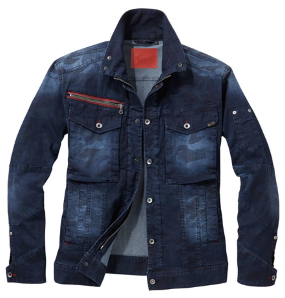 - 新品即決 JAWIN 56900 新庄剛志 春夏 ストレッチ 長袖ジャンパー インディゴカモフラ ジャウィン ブルゾン 自重堂 JICHODO