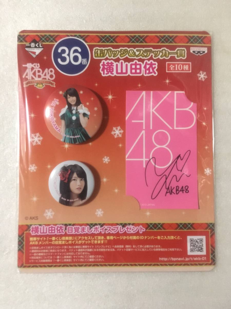 > AKB48 一番くじ クリスマス【未開封】36番 缶バッジ&ステッカー賞 横山由依 2012年